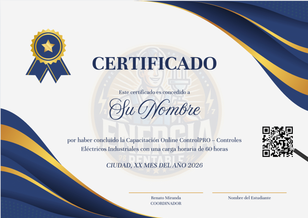 Además tambien te llevarás... Un Certificado de Finalización: Experto en Controles Eléctricos Industriales